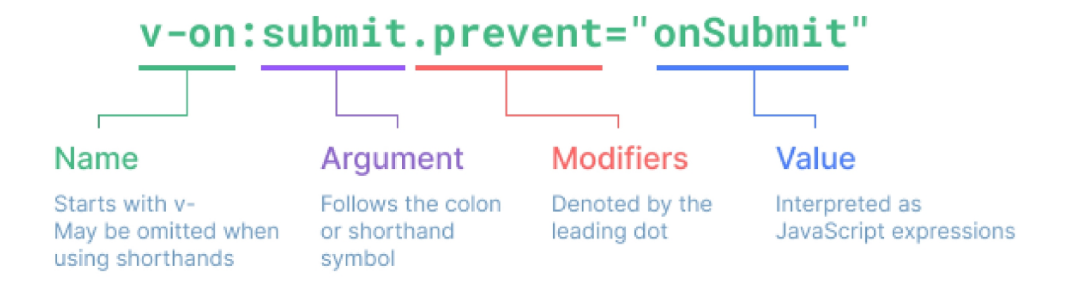 - v-접두사가 있는 특수 속성에는 값을 할당 할 수 있음
