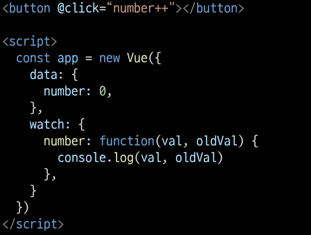 - v-on <button v-on:click="number++">
