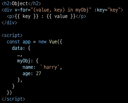- v-for 사용시 반드시 key 속성을 각 요소에 작성