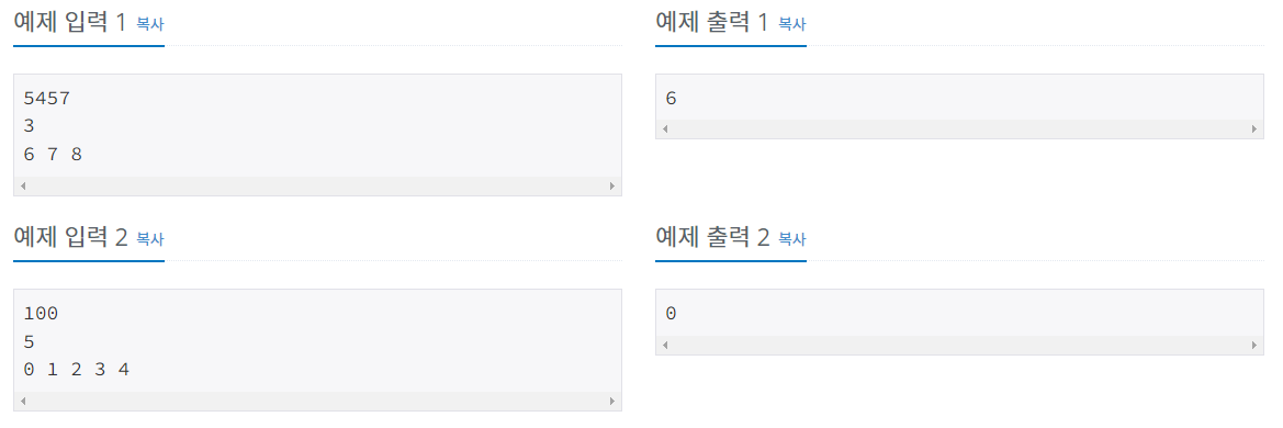 n = int(input()) # 고장난 버튼 개수